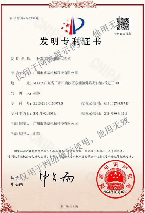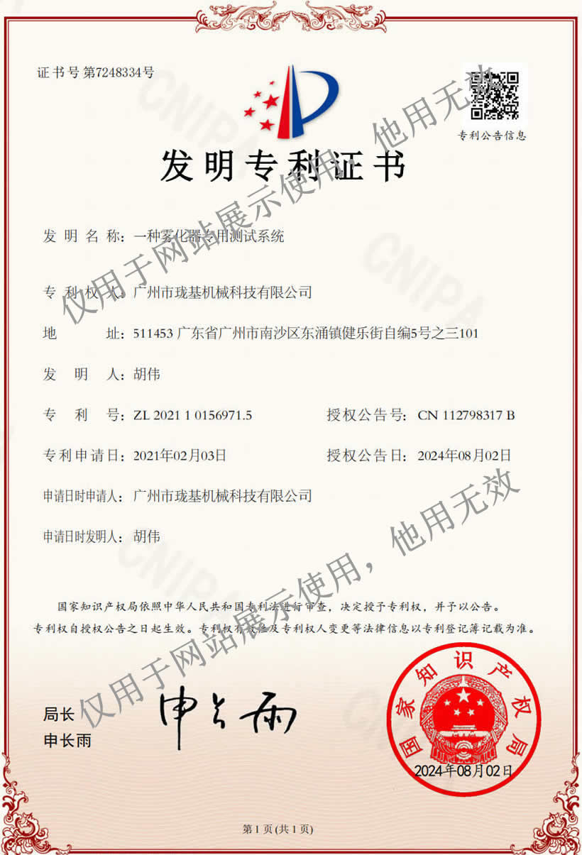 LJ-S霧化器專用測試系統(tǒng)已獲得國家發(fā)明專利,專利號為:ZL 2021 1 0156971.5