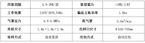 訂購時需提供的參數(shù) 1、熬合機(jī)下料口尺寸,下料口離地高度; 2、熬合機(jī)單次熬合產(chǎn)物總重量; 3、計(jì)劃單包裝載重量; 4、選用噸包規(guī)格:長×寬×高,進(jìn)料口尺寸,吊帶長度,吊帶離地總高度; 5、提供三相380V電源到設(shè)備安裝區(qū)域; 6、提供壓縮空氣到設(shè)備安裝區(qū)域。